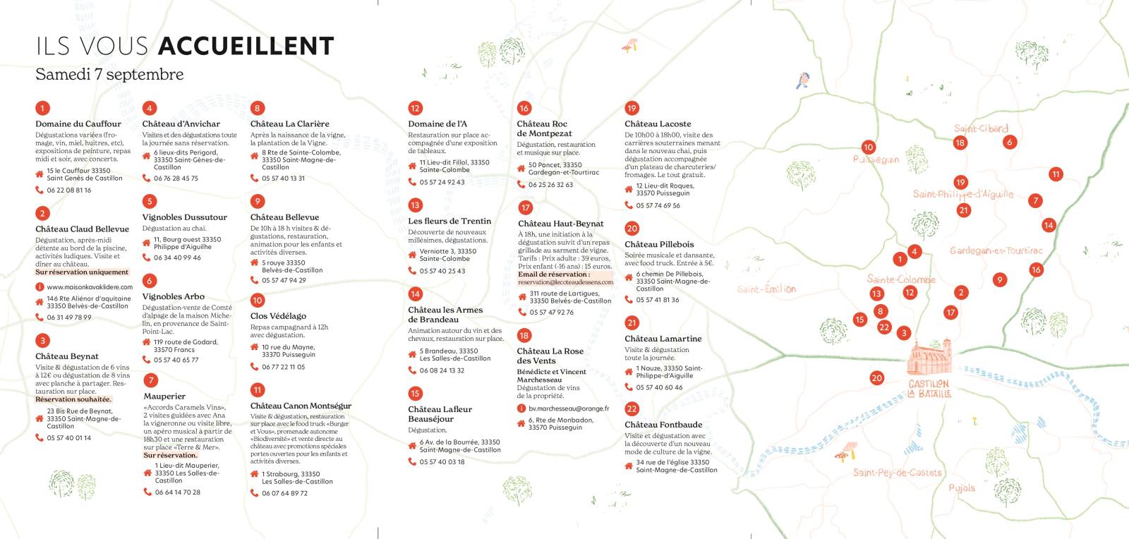 Et pour les plus sportifs : rdv à 8h30 pour deux randonnées pédestre (3 km ou 4,7 km) dans les vignes, inscription auprès de l'organisation : contact@castillon-cotesdebordeaux.com